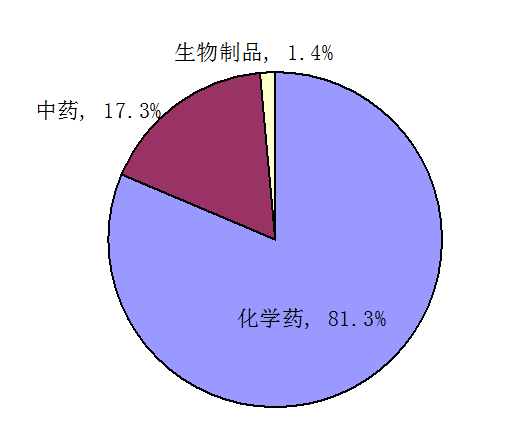 按药品类别统计,2013年药品不良反应/事件报告涉及的怀疑药品,化学药占81.3%、中药占17.3%、生物制品占1.4%。抗感染药报告数量仍居首位,占化学药的47.6%,较2012年降低1.2个百分点,报告比例已连续4年呈下降趋势。心血管系统用药占化学药的10%,较2013年上升0.4个百分点,且连续4年呈上升趋势。