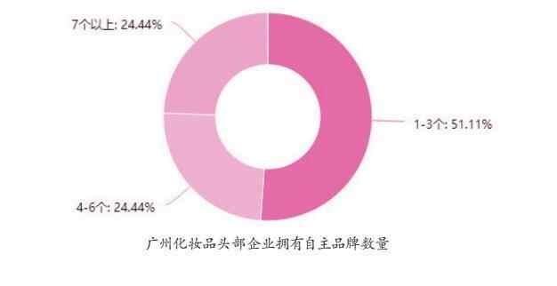 数据显示,广州已孕育了一批颇具影响力的本土化妆品品牌,90%的广州化妆品头部企业样本已拥有自建品牌,其中,拥有1-3个品牌的企业占比约51%,4-6个品牌的企业占比约24%,7个以上品牌的企业占比约24%,头部企业的品牌矩阵初步建成。随着广州化妆品转型升级的步伐加快,本土化妆品企业的品牌性正逐步提升。